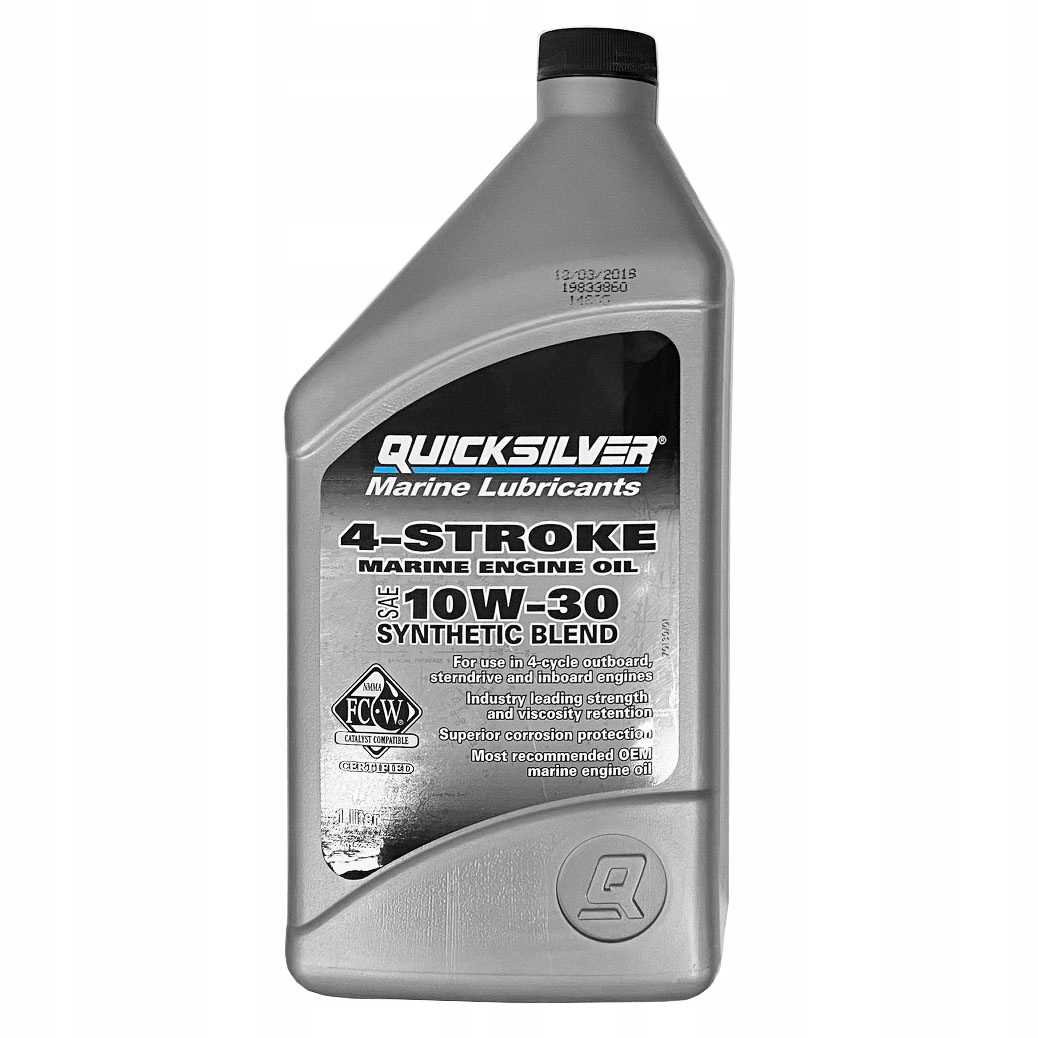 Olej Quicksilver SAE 10W30 Synthetic Blend – do silników zaburtowych 4-suwowych.