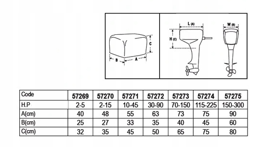 Pokrowiec na silnik zaburtowy o mocy 70-150 KM renomowanej marki Nuova Rade. Wykonany z trwałego, odpornego na warunki atmosferyczne materiału, chroni silnik przed kurzem, wilgocią i uszkodzeniami mechanicznymi. Idealny do zabezpieczenia silnika podczas transportu i przechowywania.