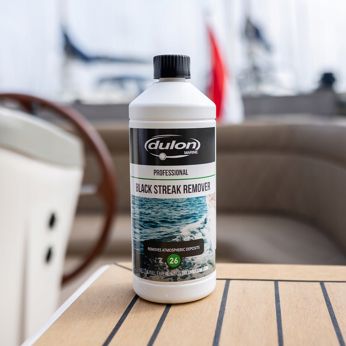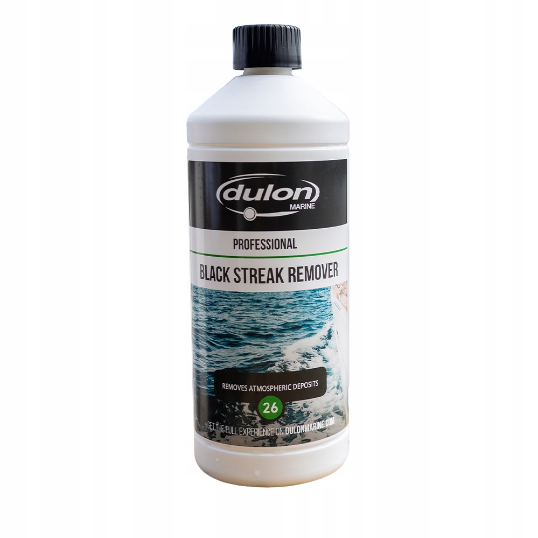 Dulon 26 Black Streak Remover to silny i skuteczny preparat przeznaczony do usuwania czarnych osadów atmosferycznych z powierzchni łodzi, kamperów i przyczep kempingowych. Formuła bez potrzeby szorowania usuwa smugi i zanieczyszczenia spowodowane przez zanieczyszczenia powietrza.