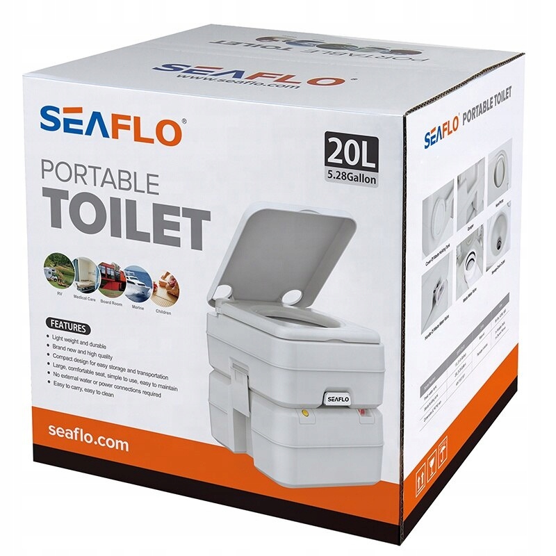 Toaleta przenośna Seaflo SFPT-20-02 to solidna i wygodna toaleta turystyczna przeznaczona do użytkowania w miejscach, gdzie brak jest dostępu do kanalizacji.