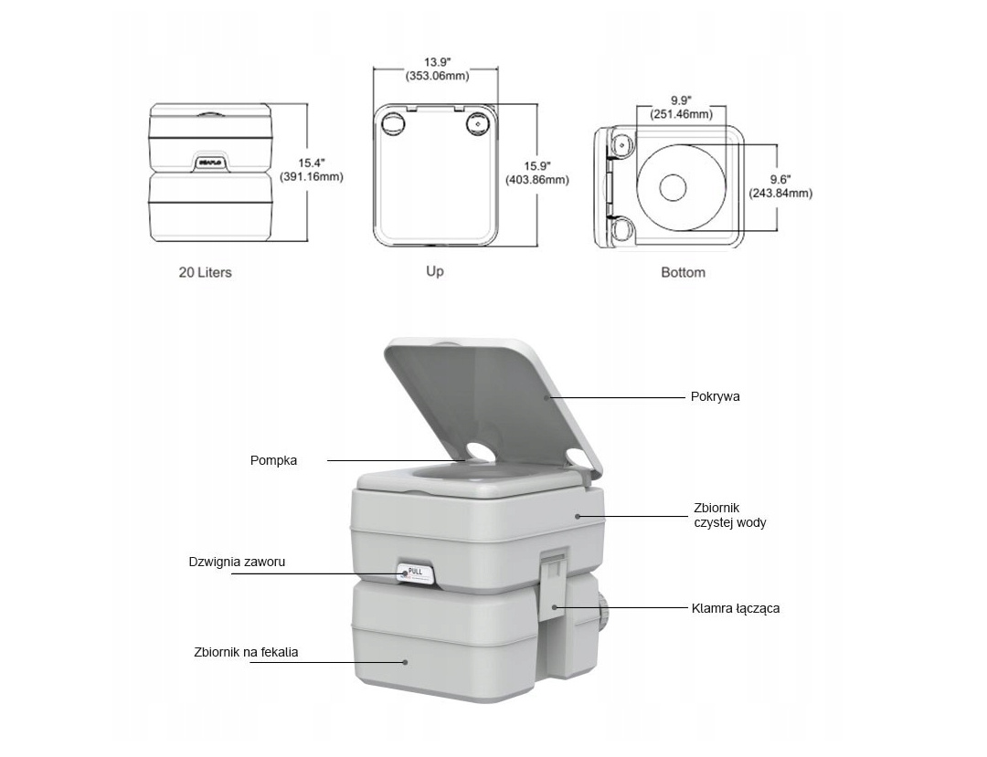 Wyposażona w dwa oddzielne zbiorniki – na czystą wodę i na nieczystości – zapewnia komfort i higienę w podróży, na biwaku lub podczas rejsu.
